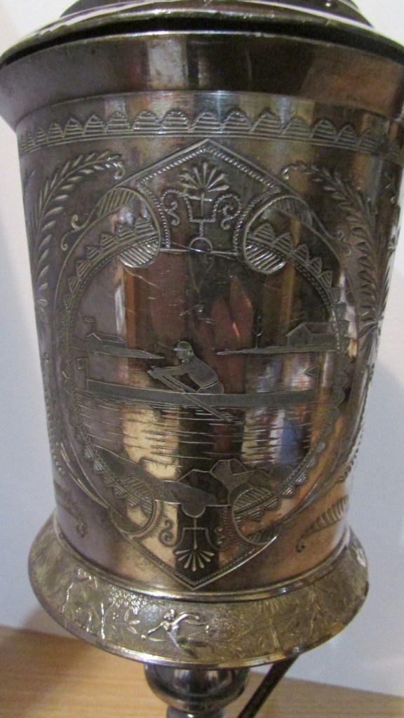 The really fascinating part about this story how this beautiful piece of Ballarat Rowing history came into my possession through a series of, I think, remarkable circumstances. In about 2009/2010 Peter Constable contacted me after having read “Boys From the Rush Beds.” He told me that he had in his possession a rowing trophy from 1882 and he asked if I was interested in buying it. He said that he had been custodian of it since 1961. I asked him if it had been passed down through his family and he said no, that he had come across it through unusual circumstances and he thought now it should go to someone who would appreciate its history, as he himself had no connection to rowing. I immediately said yes, as I felt strongly about preserving and recording rowing history.
