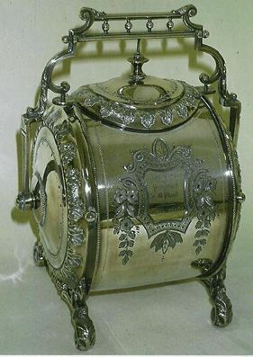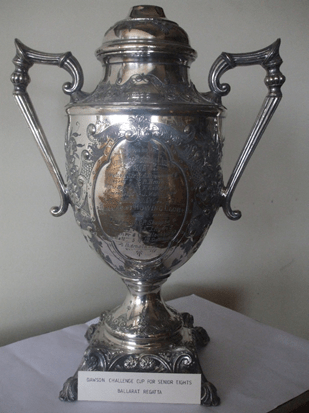 John was a jockey and then a bookmaker enabling him to live a very comfortable life. He was a member of Ballarat Rowing Club initially and his family have in their possession a silver biscuit barrel won at Geelong regatta in 1892.They also have the silver tray and monogrammed visiting cards that belonged to John and his wife Ella.He later joined Ballarat City and was a successful coach with his brother Oswald becoming a coxswain for many City crews.Ozzie later moved to Brighton, Melbourne and was the brakeman on the Big Dipper ride at Luna Park.The family also has a Eureka connection as they still have today the china teacup that grandmother McPhail was drinking from when the Eureka rebellion erupted. He died on April 27th 1950.