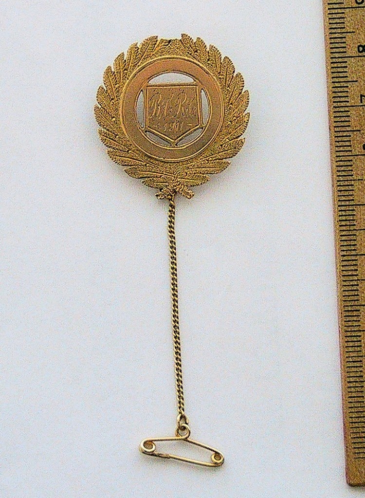 The medallion below was won by Carl Ehms in 1911 for the club’s Trial Pairs race. It is a beautifully engraved gold medallion which originally hung below two crossed oars. You can see the medallion proudly worn by a young Carl Ehms in the photograph which was taken probably around 1912.Carl had quite a rowing career continuing to feature in winning crews for the club right through the 1920’s.The medallion is still in the possession of the Ehms family.