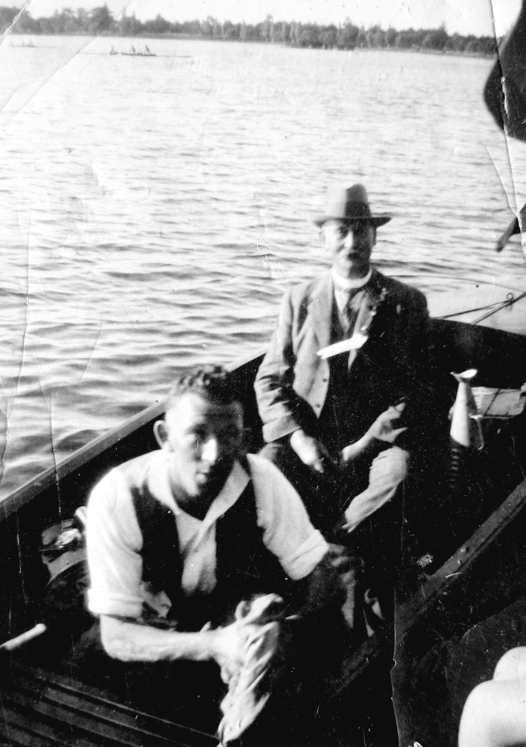 3. Mr. C.H.Bunce as judge at Ballarat Regatta and unknown assistant at the finish line of a pair-oared race.