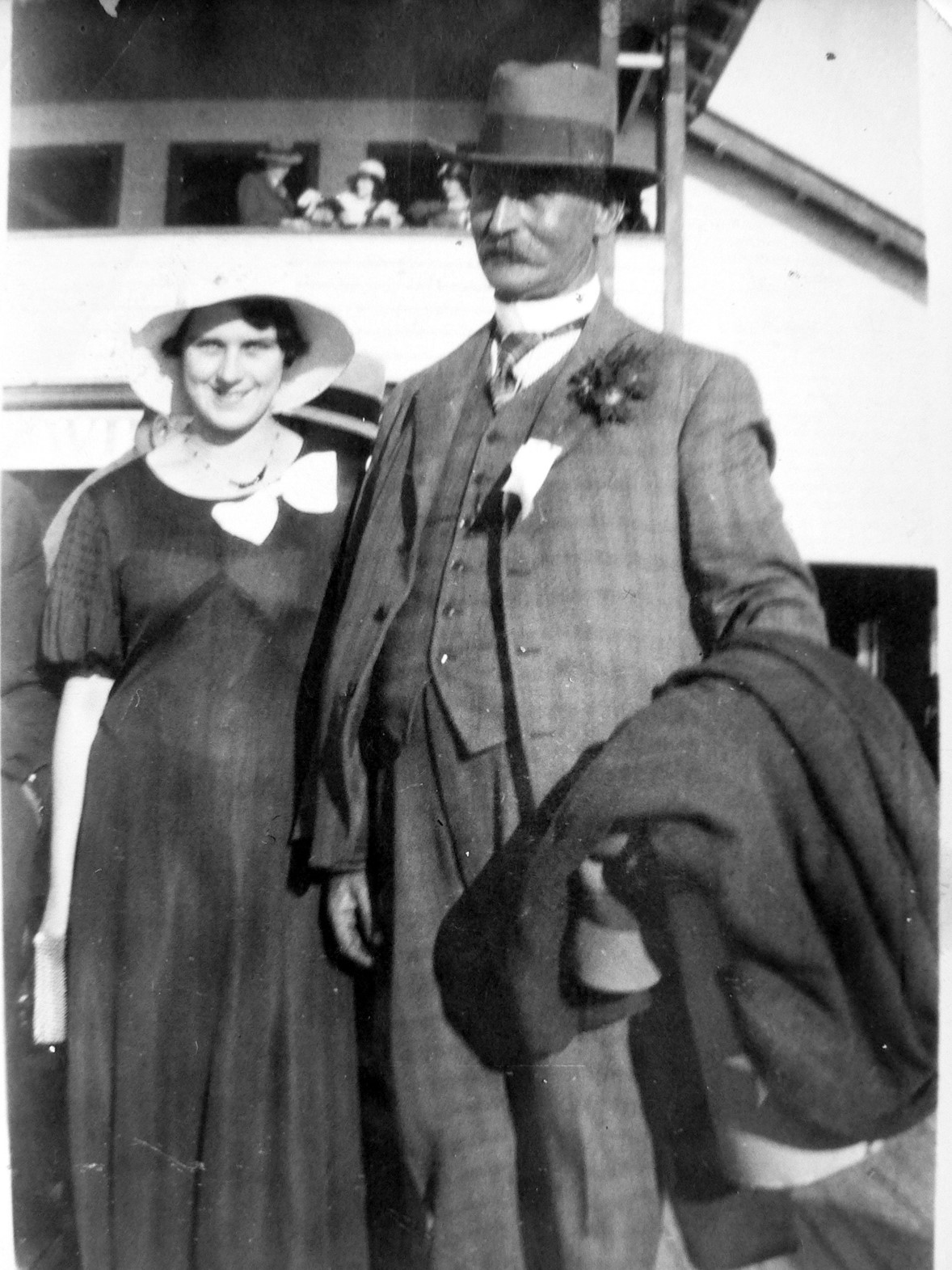 2. Mr. Harry Bunce and Miss “Nellie” Walsh on the jetty of the Ballarat City Rowing Club at a Ballarat Regatta in the late 1930’s.