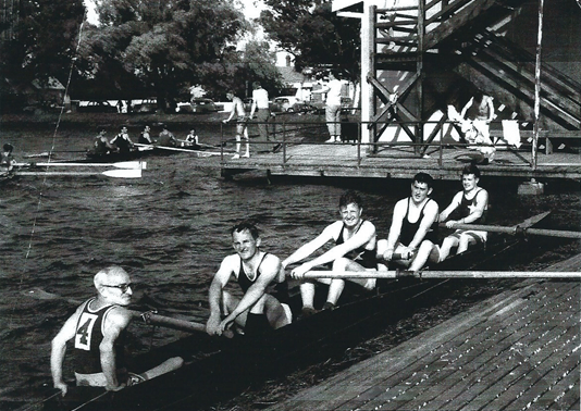 Albie rode his bike up one Saturday and went in looking for Wally. Some members were sitting around upstairs and on enquiring, Albie was told that Wally was in hospital. So he turned around and walked out to get back on his bike and ride home. Fortunately Alan Ehms, one of the members talking upstairs followed Albie down and whistled him back. He asked if he wanted a row and when Albie said he did so Alan took him out in a pair for a row. It must have made an impression on Albie because he was back up again on the Sunday morning for another go.