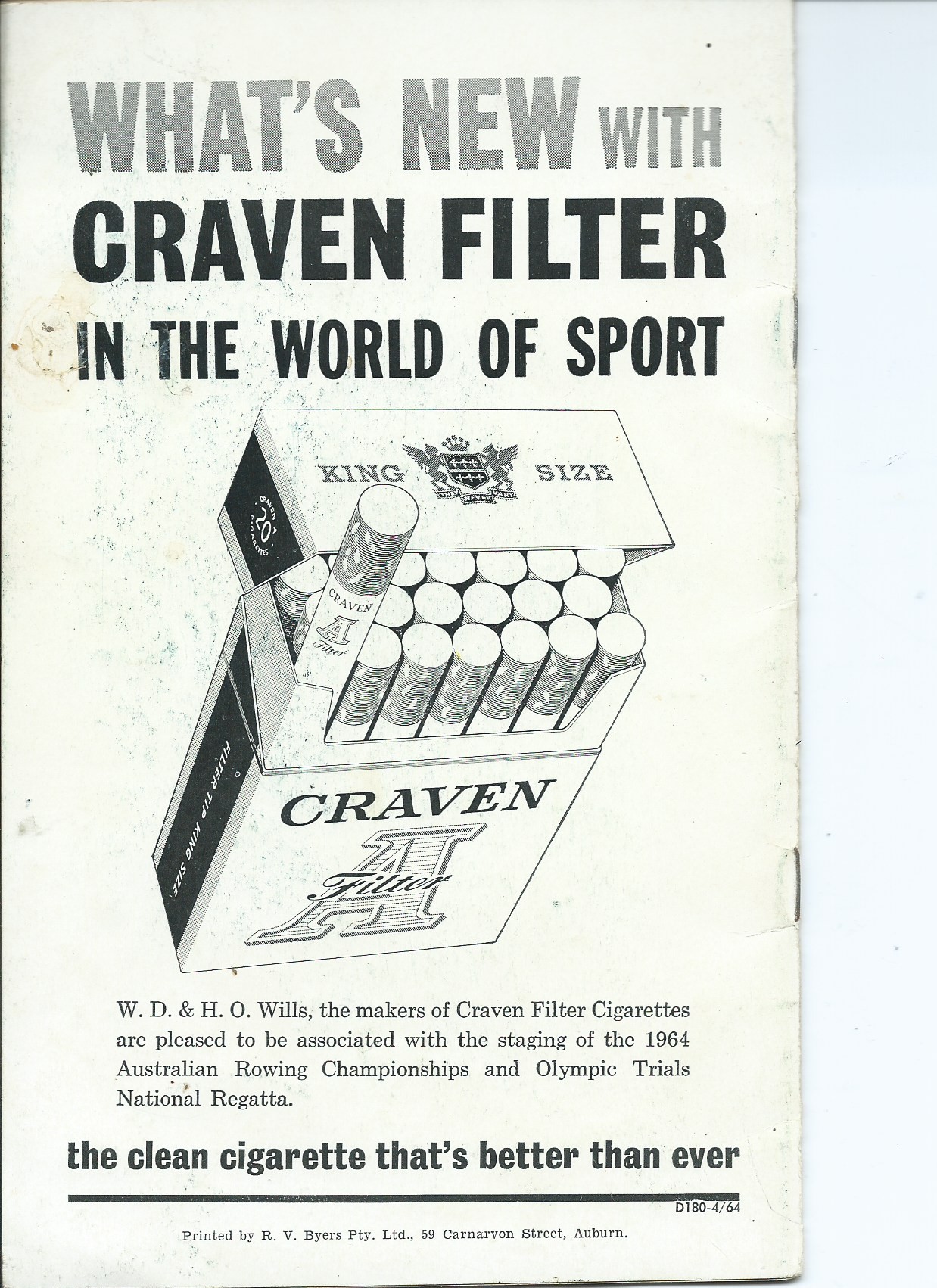 Above is the cover and the back cover of the program for the 1964 Olympic Trials. Interesting that rowing was being sponsored by the tobacco industry! How times have changed.