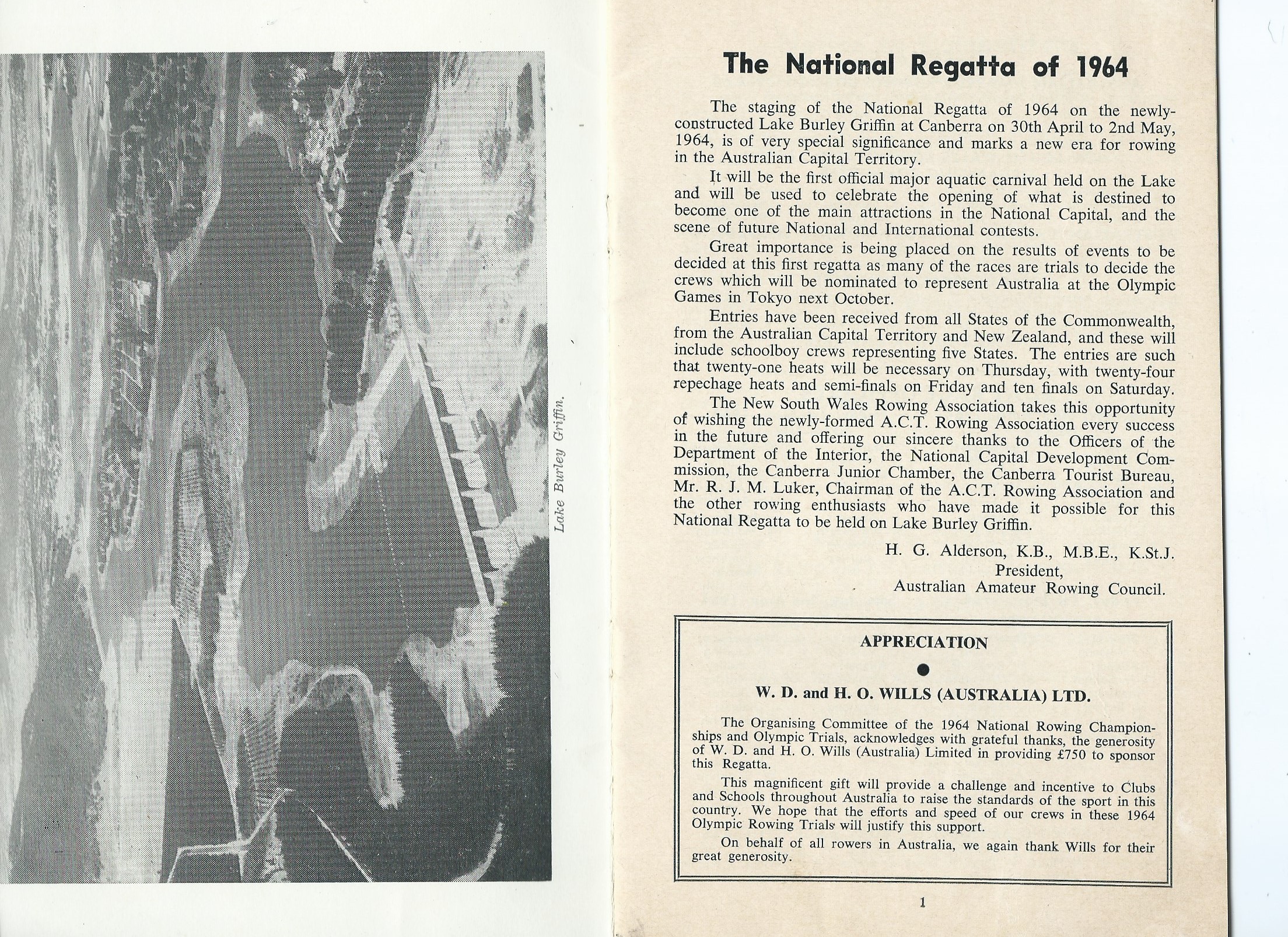 At the end of the season Alan Dixon, who was again club Captain, was selected to row in a composite Ballarat eight at the first Olympic Rowing Trials and second National Championships on the newly constructed Lake Burley Griffin in Canberra. Crews to represent Australia at the Tokyo Olympic Games were selected at this regatta. The Ballarat Rowing Association decided to send a Ballarat crew and a selection committee of three Wendouree Rowing Club members selected an eight. The eight trained together in Ballarat and managed a third placing in Canberra. This was the first crew to represent Ballarat since 1928 some 36 years previous. Alan Dixon was the only Ballarat City rower included. Alec McLeish was the manager for the Olympic rowing team for Tokyo. Alec was at Albert Park Rowing Club but he had learned his rowing at Ballarat City, a fact he always remembered. It was possibly him who would have approached Teddy Jones to steer the Albert Park Penrith Cup four because he would have known Teddy from his City days. https://rowinghistory-aus.info/rower-profiles/mcleish-alex-w