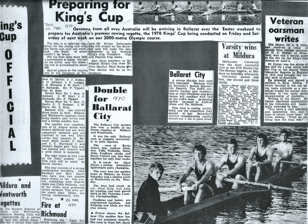 ” We are indeed fortunate in having as our home water the best 2000 metre course in Australia and full credit must be given to the Ballarat City Council for the interest and attention they have shown in the lake.” Mr. Francis Findlay was both president of the club and of the Ballarat Rowing Association and so played a lead role in the organising of the King’s Cup Regatta. Many members of the club and students from the local rowing schools volunteered their time as officials and carrying out the myriad tasks that running such a huge regatta entailed.