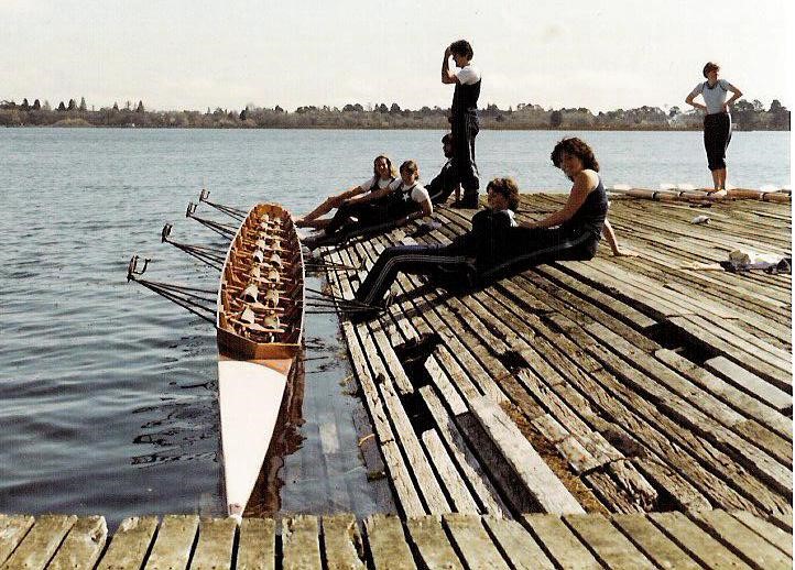 The low level of the lake also highlighted the sad state the jetty was in. So with the lake level conveniently low the opportunity was taken to pull up one side and replace bearers, beams and decking in red gum. Norm Angow, who was now retired, replaced nearly all the bearers on his own only taking time out for a brief and somewhat unanticipated swim! Norm did not enjoy swimming but he recovered and kept on working. Norm also pioneered the technique of attaching with rope to the body any tools that may accidentally be lost overboard. With every available member wielding a hammer at Working Bees for several weeks,it was completed in a couple of weekends with only the occasional loss of a hammer and no loss of life! This would have been a great achievement on its own but given that everyone involved was also training, racing, running the club, coaching and working it is a testament to those members who completed it. The cost of the materials was $600. Work as always continued on the shed with repainting the interior started this year transforming it from the pale green public amenity look to a subtle cream colour. Tuesday Night working bees were now an institution and much work was completed by a small handful of workers during this time. The club ordered a new set of womens’ blades from Jeff Sykes giving all our womens’ crews access to more appropriate equipment as our numbers meant that some women still had to struggle with man-sized handles and longer, heavier oars.