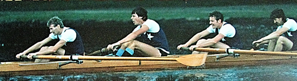 The crew of Tim Wise, Danny Elliott, James McKee and Andrew Rich also won a Senior C four at the Championship Regatta on the lake. Senior C was the equivalent to Junior and it was the first Junior four won by the club since the 1960’s.Coach Danny Elliott had to fill in for Pete Buenen in the crew at very short notice. As the crew were carrying the boat out for their race, Pete, who was a very big bloke weighing about 90kgs,stepped on a rotten board on the jetty. His leg went down the hole and the sharp edges torn his leg open to the bone. He hit the deck and the crew hit panic stations. Pete was bundled off to hospital and Danny stepped in for the hardest row of his life. In the photo of the winning crew the strain shows clearly on their faces. I think it took James, the engine room of the four, days to recover.
