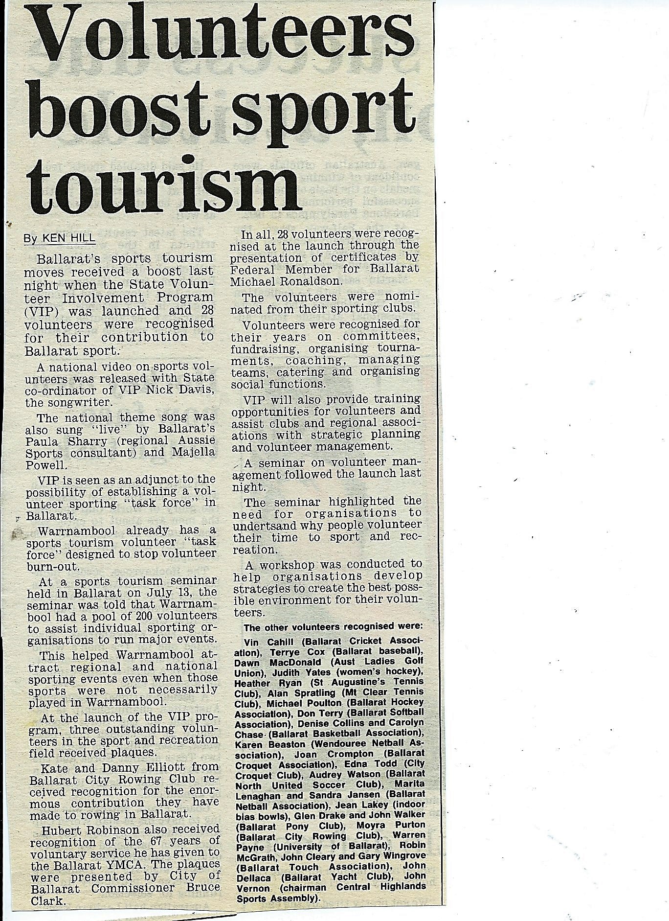 The club again posted an excellent season with a total of 65 wins. Of these there were a record 8 Victorian Championships and Ballarat City was represented in four Australian Championships wins. Rachel Taylor, a graduate of the clubs’ first Talent Identification Program was awarded a scholarship to the Australian Institute of Sport. She raced in AIS colours but was still listed by her home club, Ballarat City, when she won three Australian Championships in pairs, fours and eights. This was an incredible feat for a young lady who in 1991 aged 16 had never held an oar. Amy Pearce became the clubs’ first female rower to represent Victoria in a sweep-oared boat when she was selected in the Youth eight for the National Championships. The men again finished second on the Champion Club Premiership and the women third on the Senior Women’s Premiership.