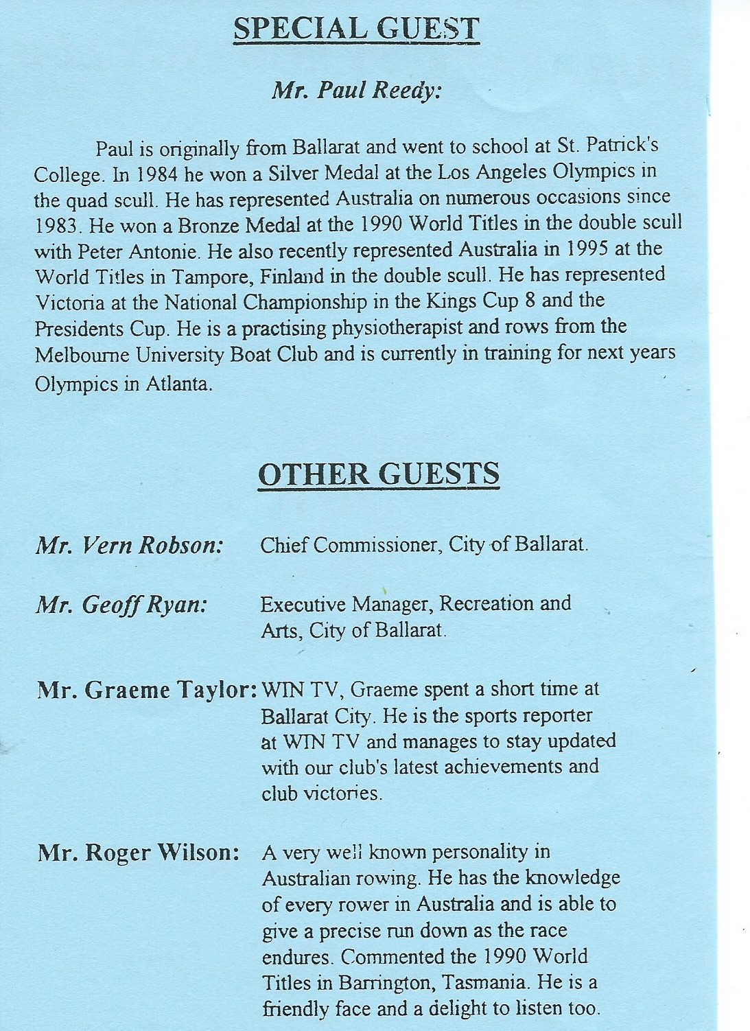 One hundred and twenty five years and the club’s one hundred and twentieth Annual meeting were the highlights of this season. A dinner was held in the hall with Paul Reedy the guest speaker. Danny Elliott was awarded his Life Membership on that evening paying tribute to his contribution and achievements over 23 years. It was fitting that the club recognise and record the many achievements that had been made in the twenty five years since the 100th anniversary. In many areas we had made quantum leaps in training and in competition but we were still very much a small and hardworking club punching well above our weight in state and National rowing. It was something many of the older members had always dreamed of and of the goals we had set ourselves back in 1985 we had achieved all of them except for Olympic representation. In the sphere of competition, the club suffered greatly from the changes to state and national rowing program. The system of selection regattas and changes to status rules literally meant elite competitors could not and did not have the time to compete for their clubs. Such was the time commitment and the effort required to train for and attend selection regattas there was literally no way that they could race at ordinary regattas. Despite this the club still scored 40 wins mainly with the efforts of our juniors particularly the men.