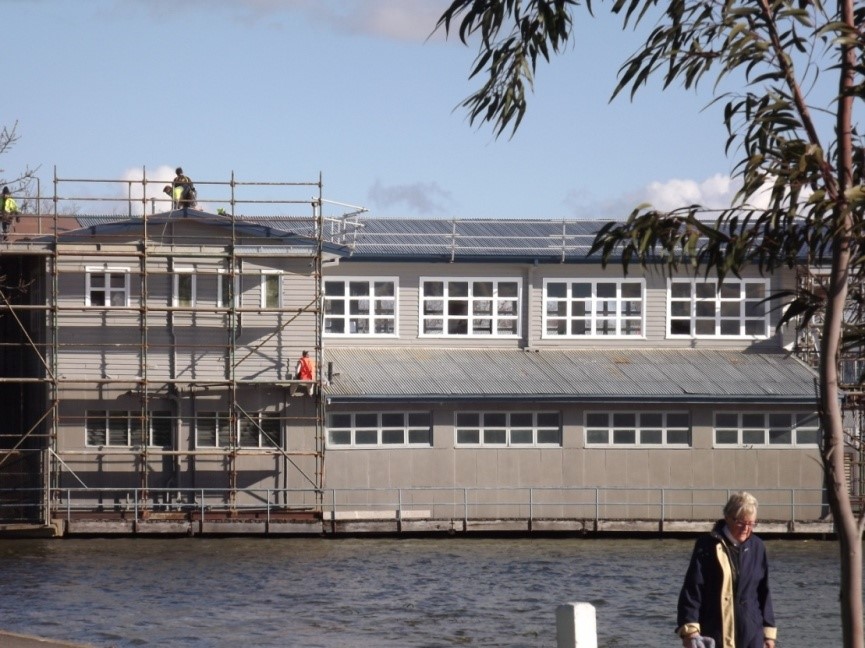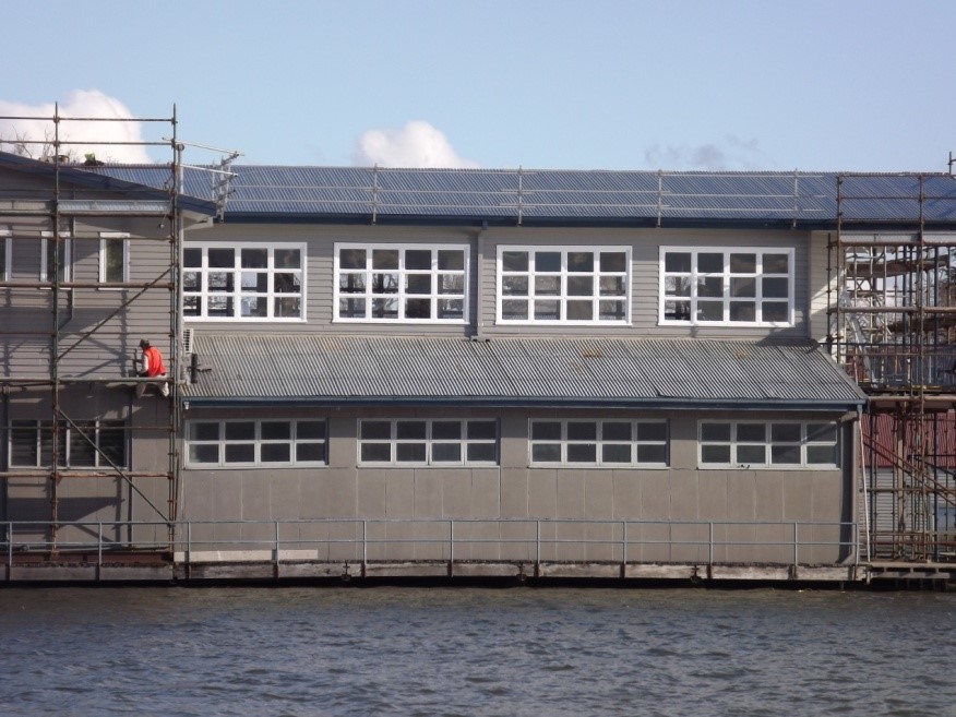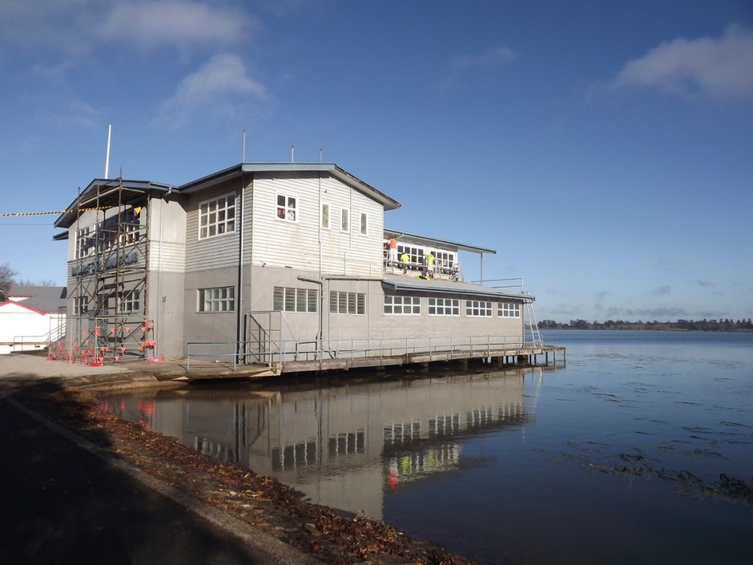 While the scaffold was in place we obtained a quote from Jim Hems for painting the shed. He and his team did a great job of scrapping back, sanding and painting the shed. He also completed a fair amount of the front and has allowed us to pay this off given our large outlay of funds in a short space of time. The total cost of repainting was just under $14,000.A Working Bee was held in January to clean up the inside of the shed. Several people worked really hard to clean and dust down walls, sweep and throw out accumulated rubbish. Jean Chew and Julie Slade of the Monday morning ladies cleaned out lots of rubbish and took a ute load to the tip.The final task on the maintenance list was to see to the repair of the balcony. Jacks were going to be placed under the balcony to lift it up on the day of the January Working Bee but the weather was wet and cold and the wet, slippery jetty was not a safe place to be working. So it is hoped to see that work done and completed this season.