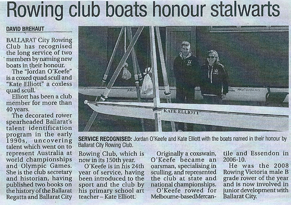 We had an approach from the President of Banks Rowing Club who met with our president, captain and co-secretary to suggest that it would be in our best interest to amalgamate with Banks to give them a base in the country. BCRC members would have reciprocal rights in Melbourne. After listening to their proposal it was obvious that we as a club would be totally absorbed and it would become Banks Rowing Club, Ballarat. So an emphatic “No thanks!” was given by our representative. In February, we finally got to see The Doctor Blake Mysteries episode that was filmed in Ballarat. It featured a number of our rowers and a lot of our equipment. The sequences with Gus Coltman, Sam Hayden and Jack Doust and were fantastic given the cold weather they filmed in the difficulty of simulating racing over a short distance to a scripted finish!
