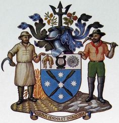 The centre of the crest is the City of Ballarat Coat of Arms featuring the miner and the farmer. On the small letterhead image, it looks like a collection of squiggly lines. We knew it was the Coat of Arms from the City of Ballarat as in the Annual Report of 1932 there is a description of the elements. I had always assumed that it was the most recent Coat of Arms but in assisting Sian with research she realised that there were two different iterations of this. The one I had assumed it was, was designed in 1956, updated for the 1956 Olympic Games. To find a copy of the original lead me to the Town Hall and there on the stairs was an etched glass image of the original design. I took a photo of this, sent it to Sian and she was able then to replicate it as it should have been.
