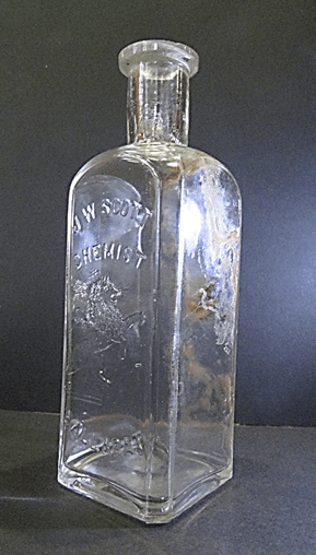 This story starts about 10 years ago when Lake Wendouree was completely dried up. I never imagined a time when I would be able to walk across the area that I had so frequently rowed over. It was a surreal experience. From 2006 the water levels started receding and we did not get adequate winter rains to bring the level back up so that by 2010 the lake was a parched and cracked wasteland. In one of my many walks across the lake bed I stumbled across a relic of a bygone era. I was just past the 1000 meter post and examining some of the massive cracks that had opened up. Out of the corner of my eye I caught a glint of glass down a few centimeters on the side wall of one of the cracks. Being a bit of a bottle collector and also not wanting to leave broken glass on the Lake bed I bent down for closer inspection. And there perfectly intact and no longer buried in mud was a lovely little clear bottle. I was thrilled that it was intact and also that it had markings on it:-“J. W. Scott, Chemist, Ballarat,” with a lion rampant embossed on the glass. I took it home and placed it with my growing collection of mementoes salvaged from the dry lake bed.
